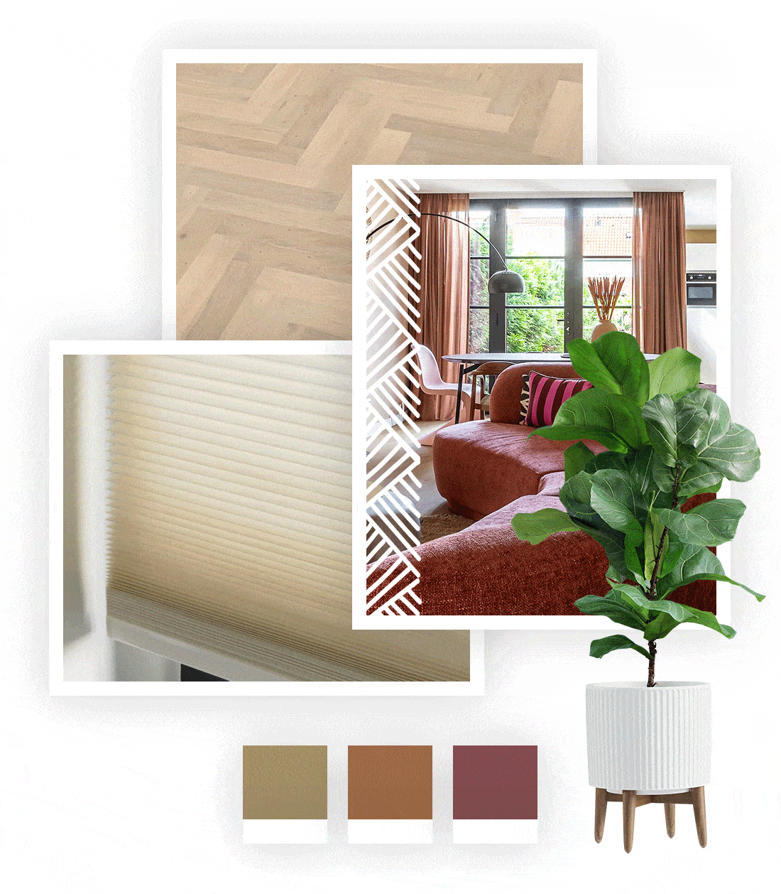 Beantwoord een paar vragen over jouw woonstijl en ontvang een persoonlijk moodboard boordevol inspiratie! In je mailbox vind je straks een prachtige selectie vloeren, raamdecoratie en ideeën voor traprenovatie, allemaal afgestemd op jouw smaak.